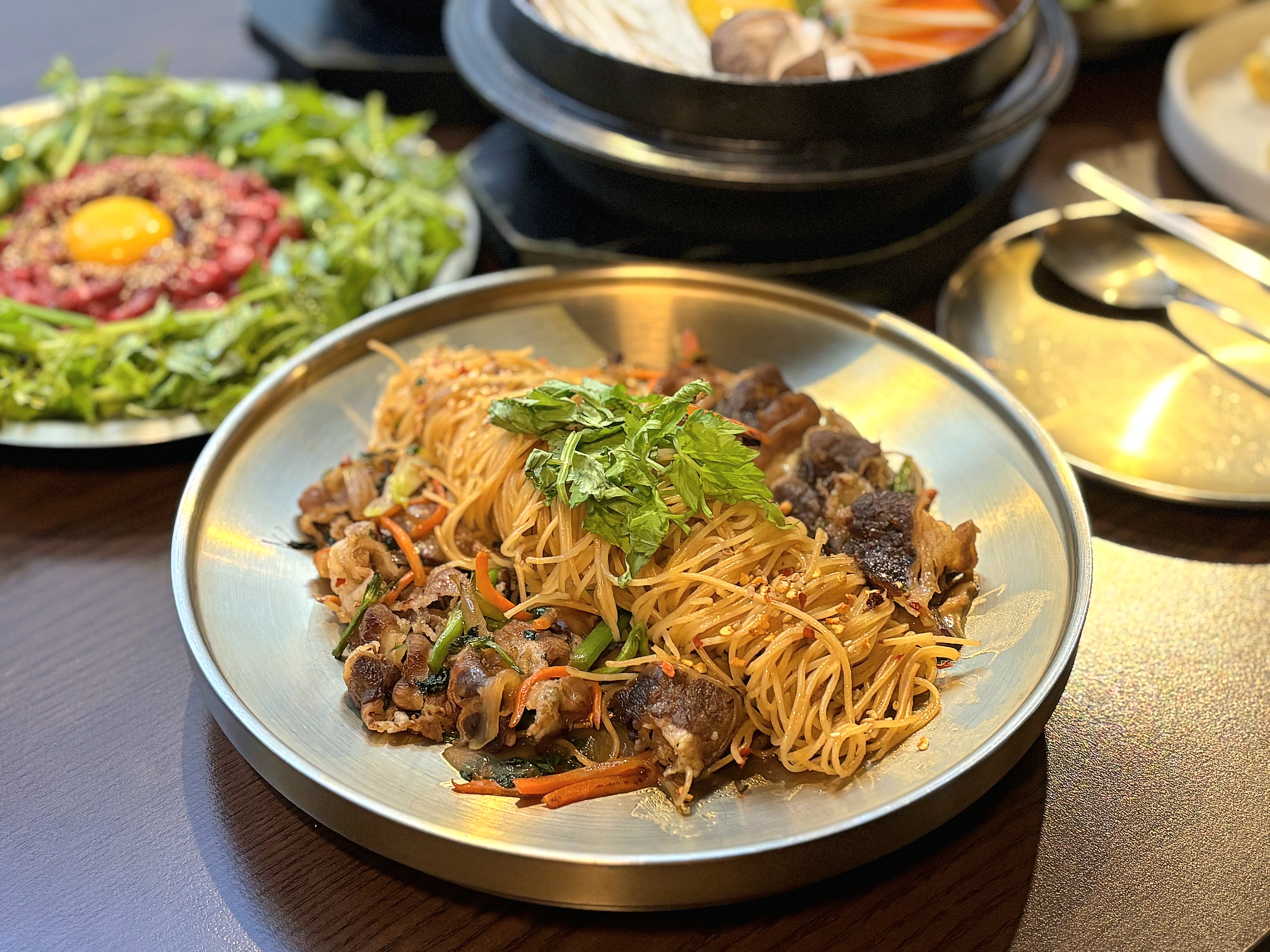 계운탕 24,000 | 아롱사태 수육전골 34,000 | 잡채파스타 12,000 | 김치어묵 칼국수 20,000 | 떡스크림 7,000 | 소금떡 5,000 | 해장 새우탕 12,000 | 유린기&장아찌 냉파스타 18,000 | 한우 육사시미 24,000 | 냉채보쌈 15,000 | 소고기 된장전골 24,000 | 고기 국수 9,000 | 미나리 육회 (한우1++) 24,000 | 항정살구이와 초무침 23,000 | 직화 닭고기 구이 14,000 | 미나리 새우전 12,000 | 물만두 계란탕 5,000