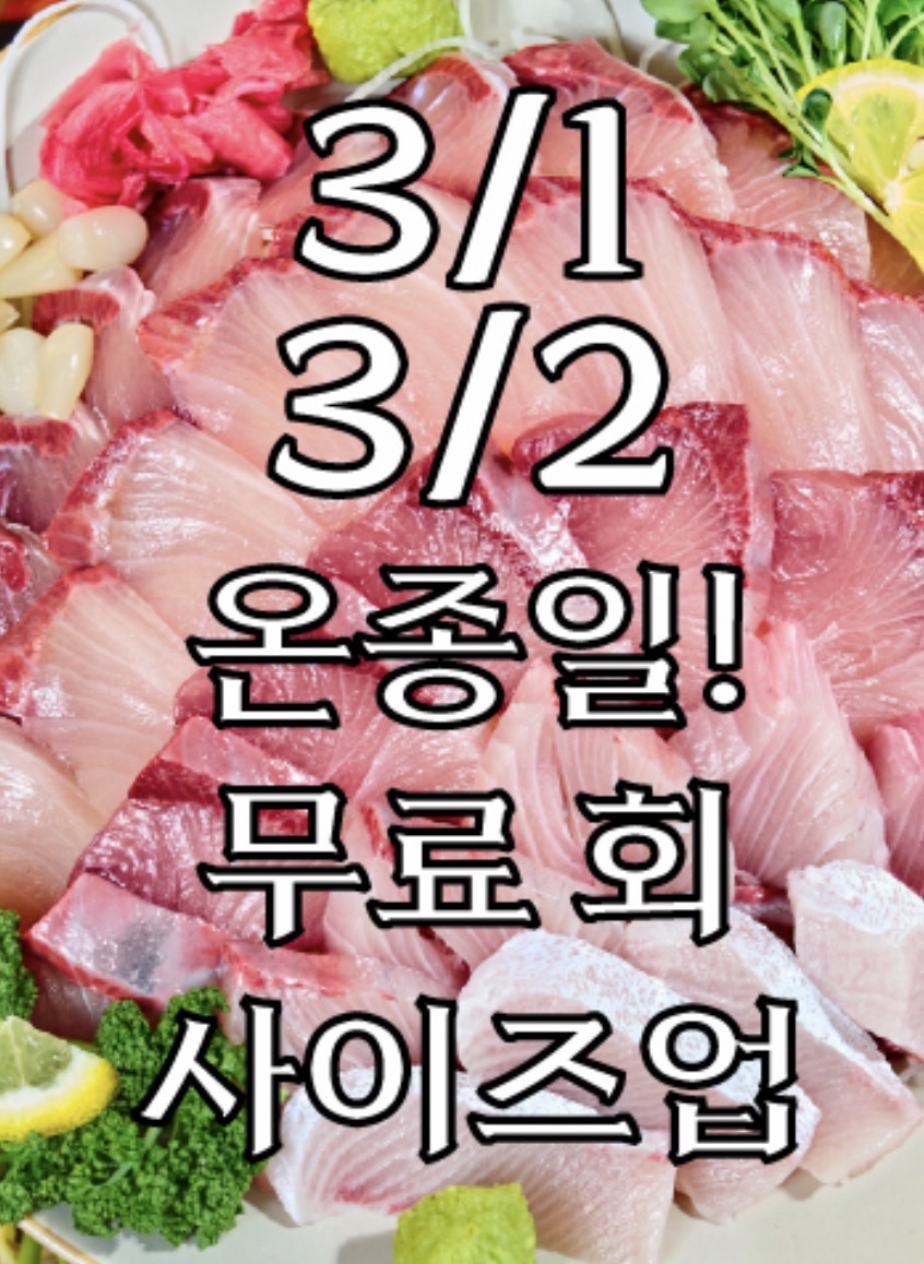 대방어 69,000 | 자매제철 모듬회 55,000 | 삼색막회무침 47,000 | 연어회 50,000 | 도다리세꼬시 45,000 | 육회낙지탕탕이 38,000 | 단새우 & 우니 58,000 | 단새우와 안키모 38,000 | 물회 28,000~46,000 | 신선한 멍게와 해삼 26,000 | 자매특선 해물라면 11,000 | 통우럭매운탕 36,000 | 서더리매운탕(횟집 기본매운탕) 10,000