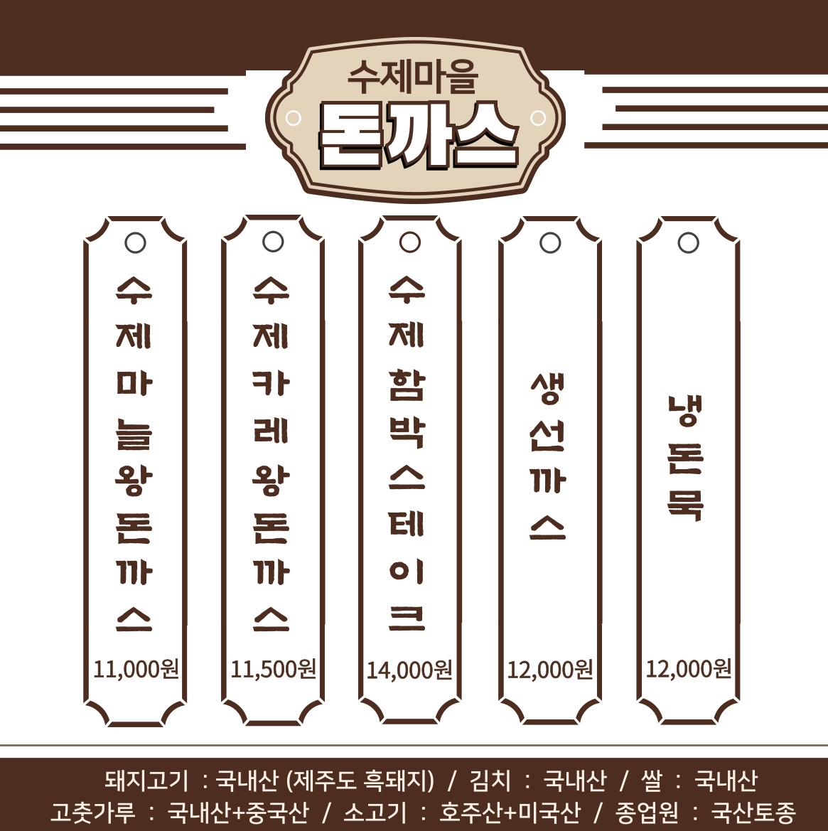 브라운돈가스 17,000 | 로스가스 16,000 | 가스오우동 8,000 | 화이트돈가스 18,000