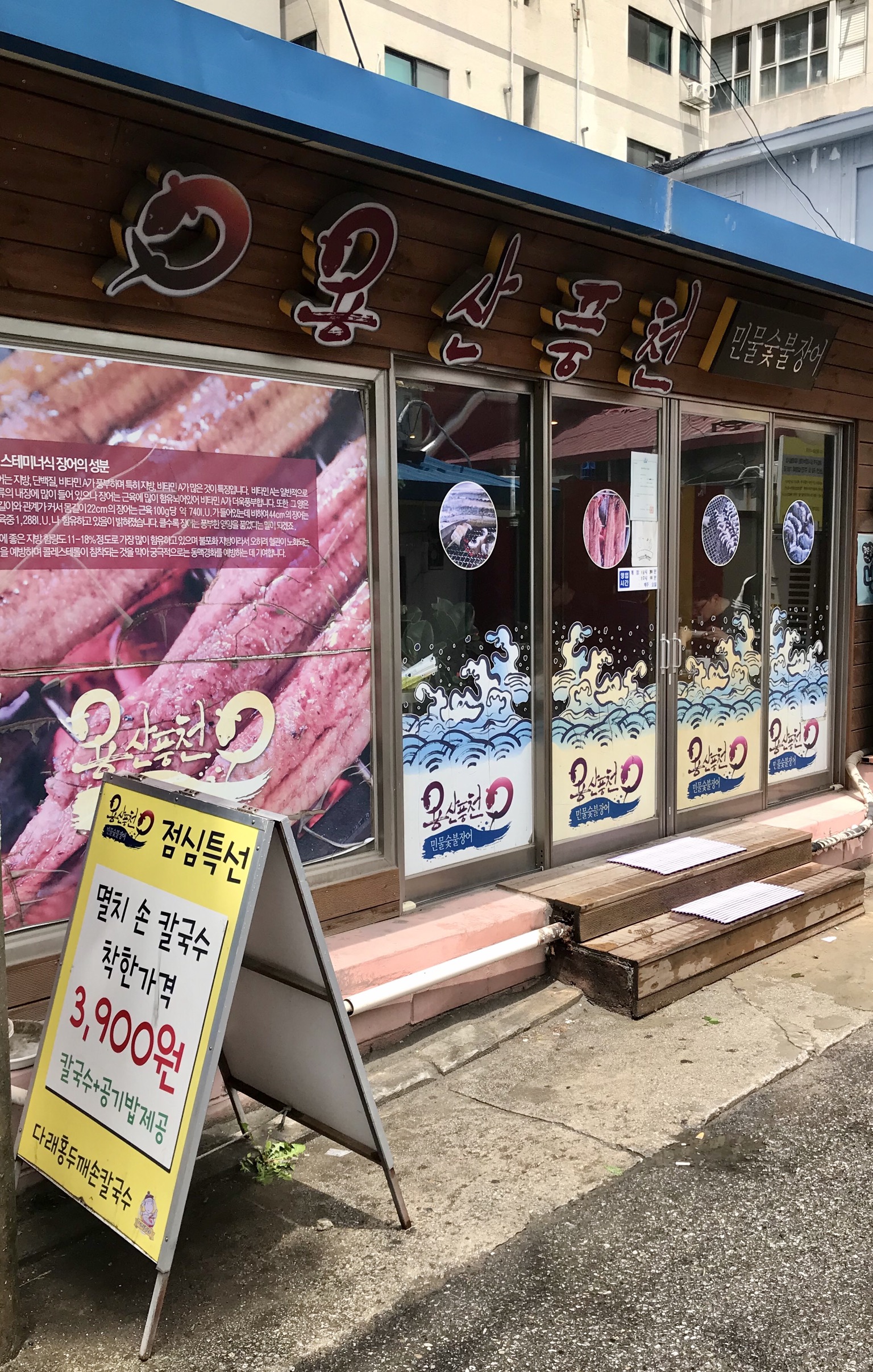장어소금구이 1마리(1인분) 29,000 | 장어양념구이 1마리(1인분) 29,000 | 후 식(칼국수, 된장찌개) 3,000 | 멸치 손 칼국수 3,900 | 멸치 손 칼국수 만두 4,500 | 찐만두(고기) 4,000 | 들깨 손 칼국수 5,000
