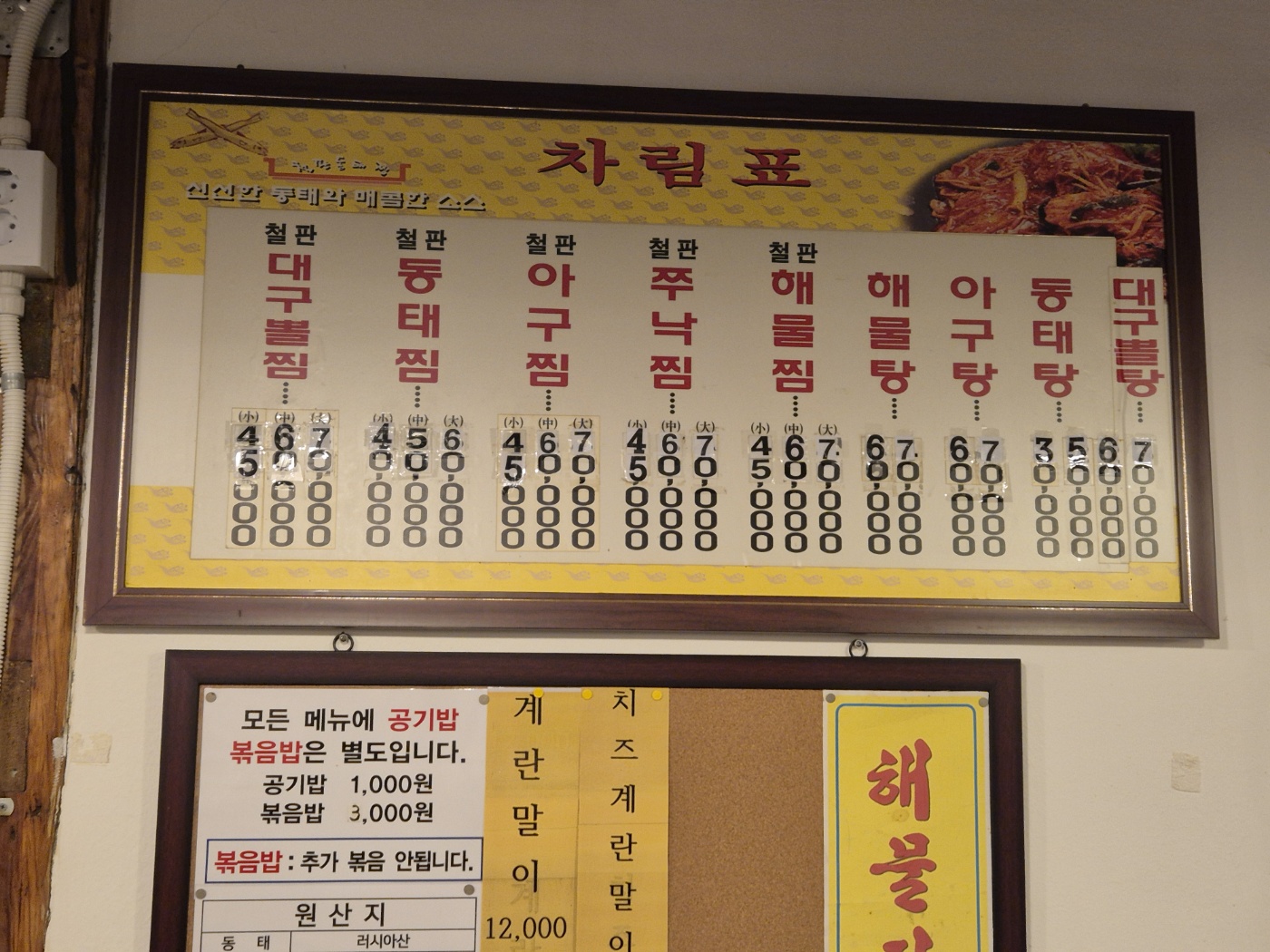 철판아구찜 45,000~70,000 | 철판해물찜 45,000~70,000 | 철판대구뽈찜 45,000~70,000 | 철판동태찜 40,000~60,000